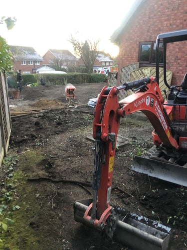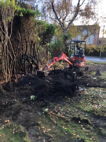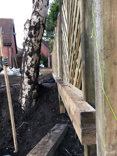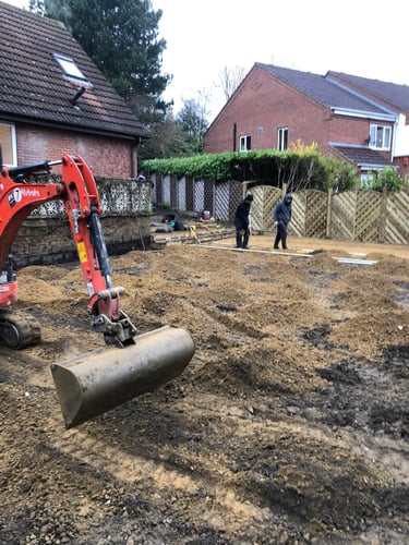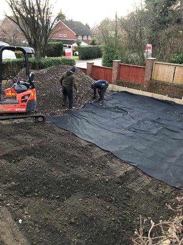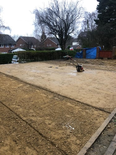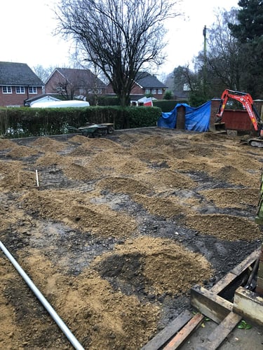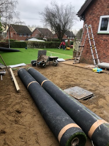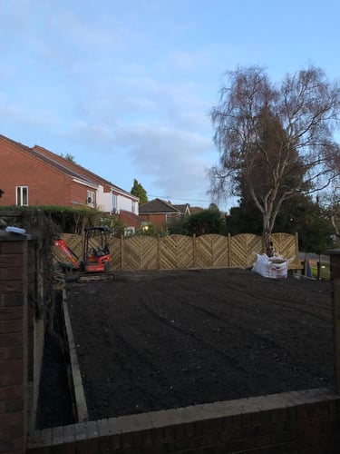 Our challenge began with a garden that was intricately ornamental, featuring a variety of shrubs, trees, and garden beds set on a sloped gradient. The client’s vision was clear: they desired a flat, tabletop-level football pitch. With no Tree Preservation Orders (TPO) hindering our progress, we swiftly removed the existing vegetation, making way for the new design while carefully replanting a selection of firs for added security and privacy.
