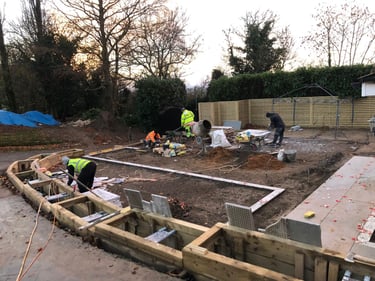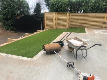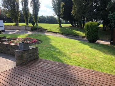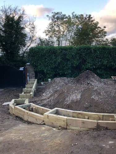Over the course of this project, we removed more than 120 tonnes of earth, along with rotting wooden decking, old cobbled walls, and cracked flagstones. Our goal was to create a serene outdoor living area perfect for late summer evenings spent outdoors, complete with BBQ gatherings.