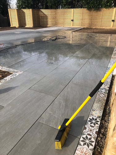 Woodstone successfully secured the contract against four competing companies, and we wasted no time in bringing our vision to life. Our team expertly installed retaining walls, land drains, contemporary perimeter fencing, and elegant pergola structures. The outdoor space was finished with stunning porcelain surface coverings and integrated surface lighting, complemented by artificial grass and raised planting beds featuring driveway and planter lighting.